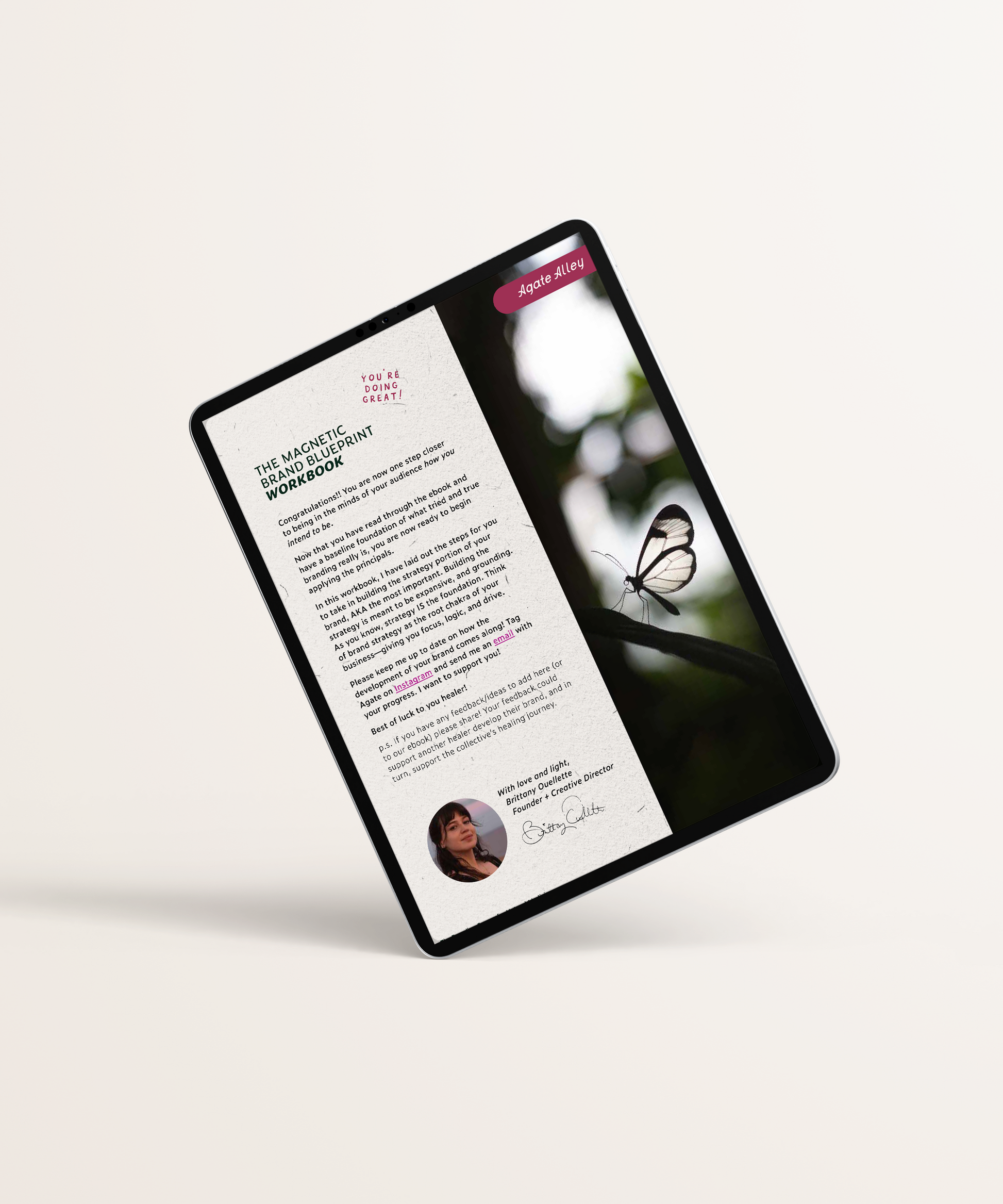 In this workbook, I have laid out the steps for you to take in building the strategy portion of your brand, exactly how I do it. This is where you will fill out all your own information according to your unique healing brand.